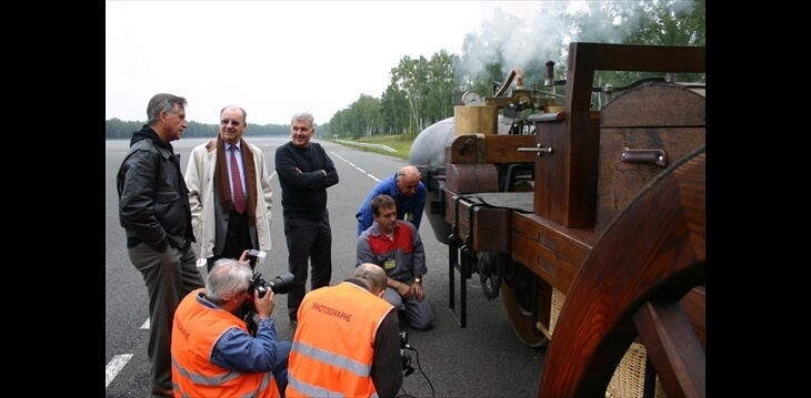 Samedi 01 septembre 2012, sur l’autodrome de la cité de l’automobile de Mulhouse (Haut-Rhin), l’association met en place la réplique du Fardier. Vers 10h, mise en chauffe. Vers 11h20, le départ est donné.