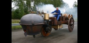 de participer à cette aventure avec des gens formidables. La crainte que le Fardier ne soit pas fonctionnel était bien présente. Quelle joie lorsqu’il s’est déplacé de ses propres moyens, et quel bonheur de rouler 50 mn sans arrêt, ni rechargement alors que les historiens parlaient de 15 mn ».